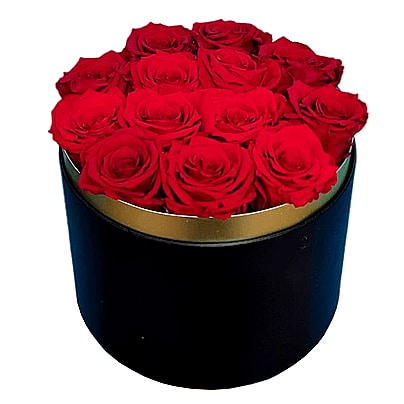Idea Regalo per Natale! Un’elegante cappelliera nera con Rose Fresche Rosse